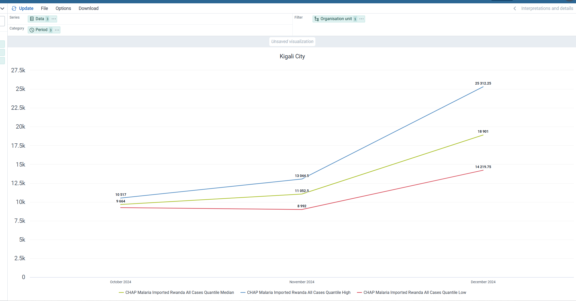 🛈 At this point, it's also possible to click "Download data" to download the specified disease data from DHIS2 into a CHAP Core-supported format, and continue the remaining analysis programmatically with the CHAP-cli.